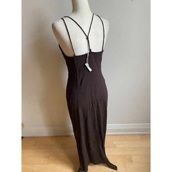 Frame BNWOT womens black delicate knot midi dress sz Medium side slit