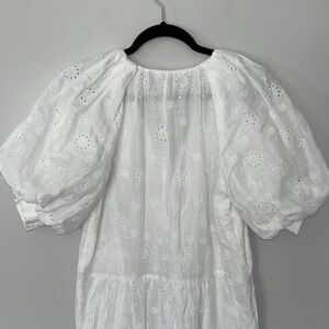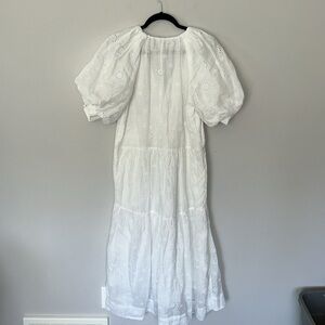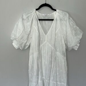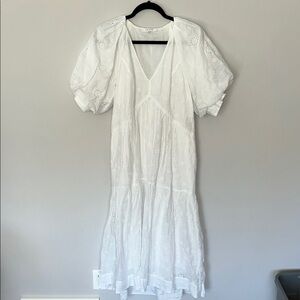 Frame Broderie Anglaise Ramie Puff Sleeve Midi Eyelet Dress in White