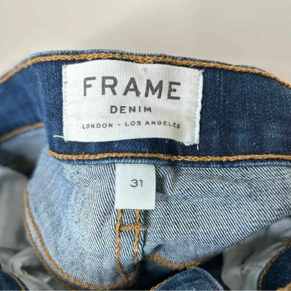 Frame Denim Ali High Rise Cigarette Jeans Morrisly Blue Distressed Raw Hem Sz 31