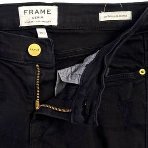 Frame Denim Black Film Noir Le Skinny De Jeanne Distressed Skinny Leg Jeans 26