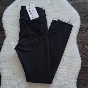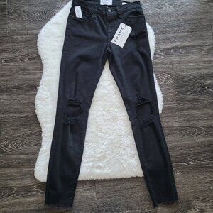 Frame Denim 👖🖤 Le Skinny De Jeanne Crop Distressed Denim in Lord Noir