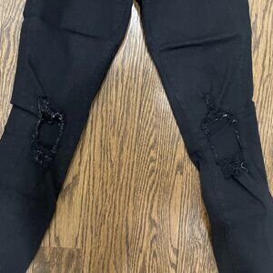 Frame Denim- Le skinny de Jeanne CROP. Size 23. Black with rip at knees