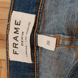 Frame Denim Le skinny de Jeanne distressed jeans size 26, in good condition, waist is 14.2", inseam is 28.4", rise is 8.5"