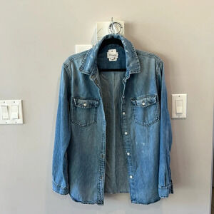 Frame Double Pocket Button Down Shirt Distressed Denim