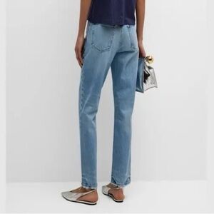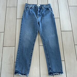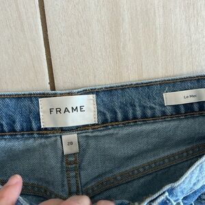 Frame Le Mec straight light Wash denim with distressed frayed hem