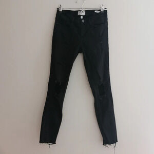 Frame Le Skinny De Jeanne Ankle Crop Jeans in Lord Noir Black Distressed 27 (4)