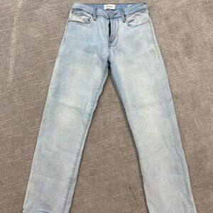 High rise Jean that is fitted through the hips to the mid thigh and relaxes into a slim straight leg that hits above the ankle