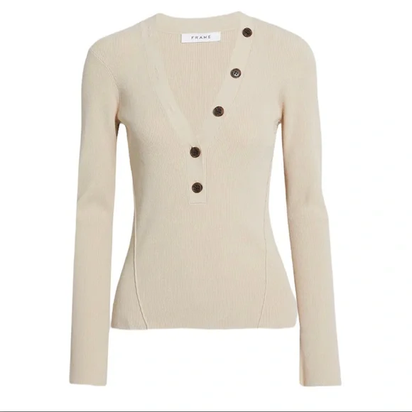 Frame Rib-Knit V-Neck Top-Vanilla-size L
