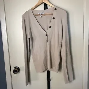 This long-sleeve top is designed with a v-neck with buttons along the side.