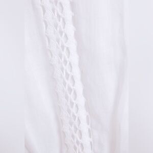 Shirt dress Gauze Crochet trims Gathered Detachable waist tie Folded cuffs Two front slant pockets Button fastenings through front Non-stretchy fabric Lightweight fabric