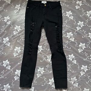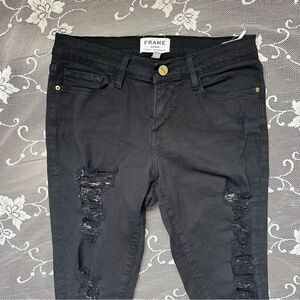 Frame Denim Le Skinny de Jeanne Black Distressed Jeans Sz 28