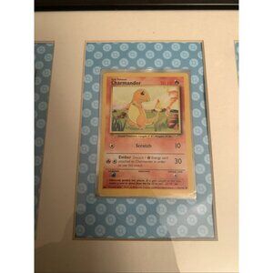Explore the world of Pokémon with this classic framed set featuring the beloved characters Charmander, Bulbasaur, and Squirtle. The cards, numbers 44, 46, and 63 from the iconic Base Set, showcase the artistry of Mitsuhiro Arita and are a must-have for enthusiasts and collectors alike. Each card is presented in English and maintains the regular finish that adds to the nostalgic charm.