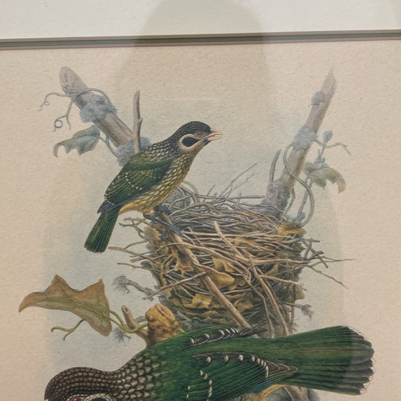 Beautiful framed art print featuring birds with green and brown tones. Perfect for home decor.