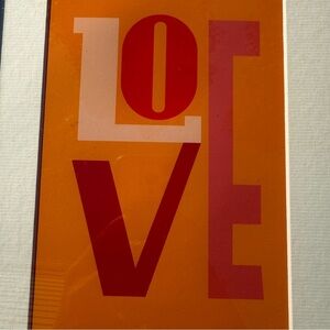 Pretty Vibrant art print with 'Love' text in a black frame. Features orange, red, and pink colors.