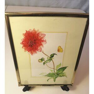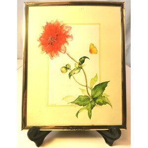 Framed Jean Thornton Dahlia Print Butterfly Vintage 1980s Botanical Wall Art