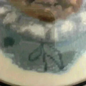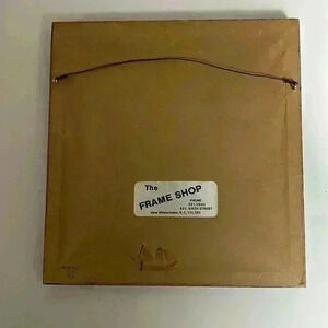 This baby girl is adorable Frame is 9 inches by 9 inches. Frame is a bit scratched up but needlepoint appears pristine