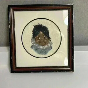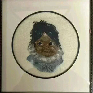 Framed Needlepoint | Vintage 50's indigenous baby girl.