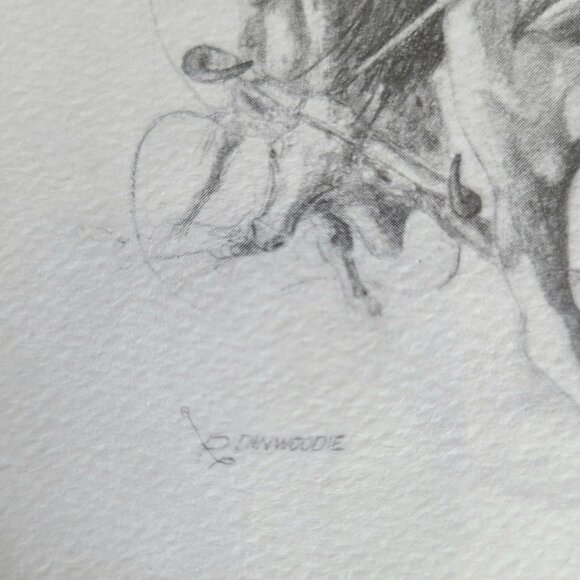 Framed art work signed by R. Dinwoodie. Western. Horse riding. Cowboy.