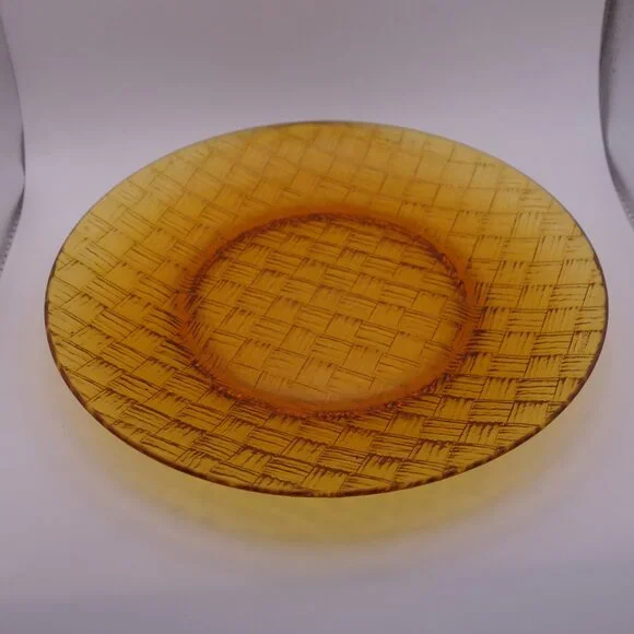 France Amber Color Glass Wicker Pattern 9 Inch Plate