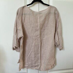 Francesca Bettini Linen Blouse Womens M Pink Eyelet Made in Italy Boho Lagenlook