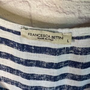 Francesca Bettini Tunic Blue & White pin striped 100% LINEN Slip on dress Size L