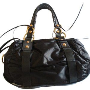 Gorgeous Francesco Biasia Butterfly Glam black nylon & faux leather satchel.