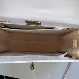 Stunning authentic white Francesco Rogani bag in amazing condition.Genuine leather, tan interior with gold hard wear comes with longer shoulder strap and key and locket that actually locks your purse.