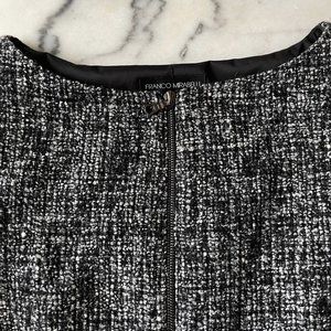 Gorgeous and well made Franco Mirabelli tweed dress, brand new with tags. Front zipper detail with back slit. Great sheath dress that can be worn for so many occasions. Purchased from The Finerie, a fabulous independent boutique in Seattle, WA.