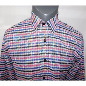 Franco Negretti Montreal Mens Medium Pink Blue Black Plaid Button Front Shirt