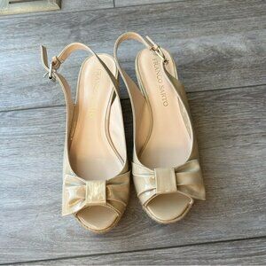 Franco Sarto Beige Vegan Patent Leather Slingback Peep Toe Wedge Esapdrille