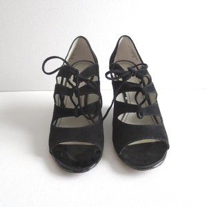 Franco Sarto Black High Heel Platform Lace Up Evening Sandals Shoes Pumps