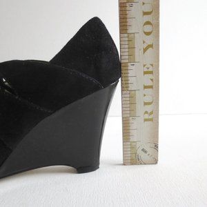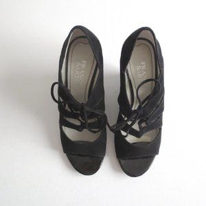 Franco Sarto black leather suede & patent open-toe lace-up gladiator wedge platform high heel sandals