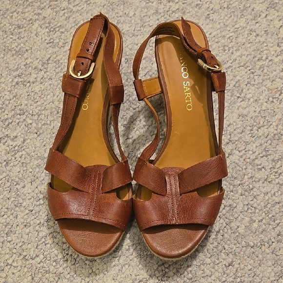 Franco Sarto Brown Sandals with Wedge Heel and Adjustable Strap