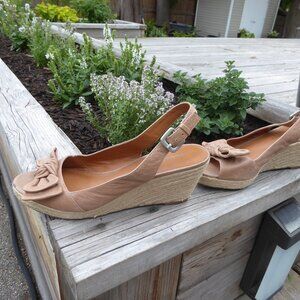 Franco Sarto, Buckle closure slingback, espadrille sandles; Tan colour leather' 2 1/2" heel. Size 8, Barely worn,