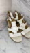 Step into effortless summer elegance with these Franco Sarto “Cera” wedge sandals. Crafted from genuine leather with a natural cork wedge, these sandals offer both comfort and sophistication. The strappy design and adjustable ankle buckle provide a secure fit, while the neutral white hue pairs beautifully with everything from sundresses to jeans.