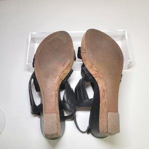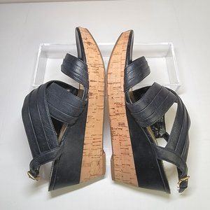 Franco Sarto Cork Platform Wedge Heel Leather Sandals Black