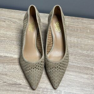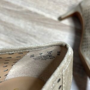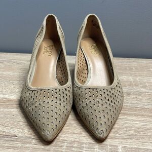 Franco Sarto Dew Perforated Kitten Heel Shoes Nude Genuine Suede Pointed Toe 9