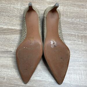 Women’s nude tan Franco Sarto “Dew” Perforated Kitten Heel Shoes Pumps.