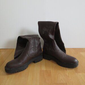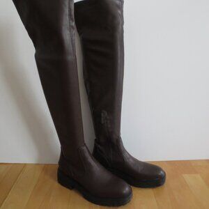 Franco Sarto Fera Brown Tall Pull On Over the Knee Brown Zip Lug Sole Boots 7
