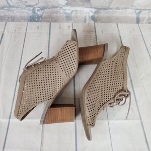 Franco Sarto Gossip Peeptoe Slingback Sz 9W Taupe Suede