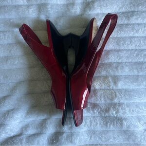 Franco Sarto Italian Womens US8.5 Bright Red Peep-Toe Slingback Wedges