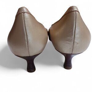 Brand: Franco Sarto, Size: 8.5 Women’s, Color: Metallic Gold, 2" Kitten Heel, Material: Leather upper,