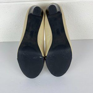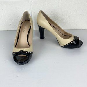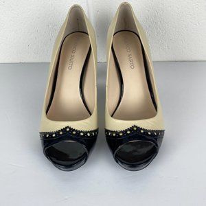 Franco Sarto Shoes Size 10 Ivory Black Bruna Leather Wing Tip Peep Toe Pump