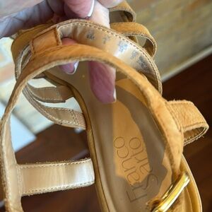 Excellent used condition. Step out in style with these chic tan strappy sandals. Perfect for any occasion, these sandals offer both comfort and elegance.