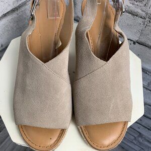 Franco Sarto Wedge Neutral Suede Cork Open Toe Slingback Espadrille Sandal
