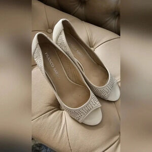 Franco Sarto Wedges Open Toe Sandals Platform Leather Off White Size 8