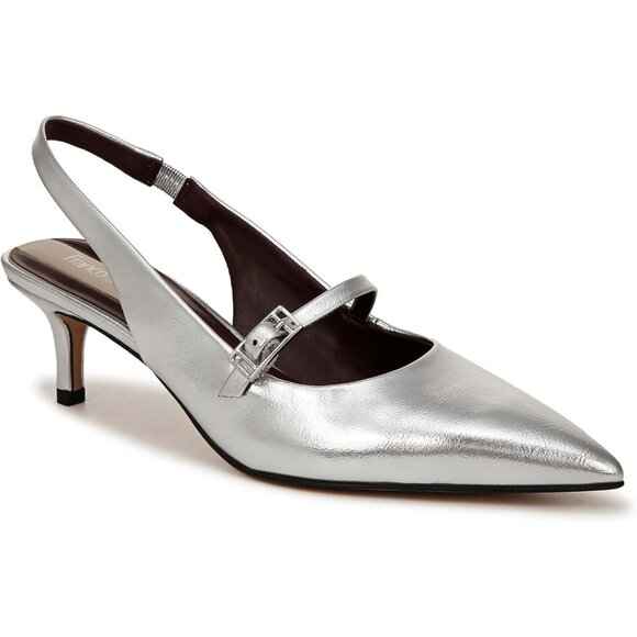 Franco Sarto Women Silver Metallic Khloe Pointed Toe Slingback Kitten Heel Pump