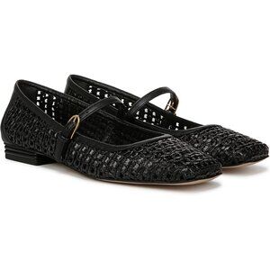 Franco Sarto Womens Black Open Weave Faux Leather Tinsley Mary Jane Ballet Flats