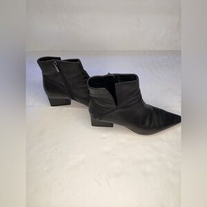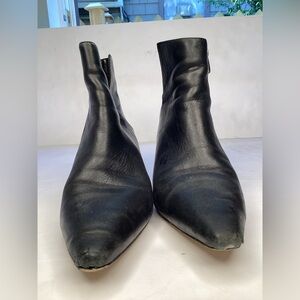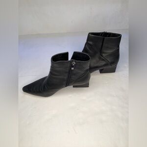Black leather boots with side zipper and chunky heel. Very comfortable. In very good condition except for some wear to outer toe area (see pics)