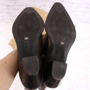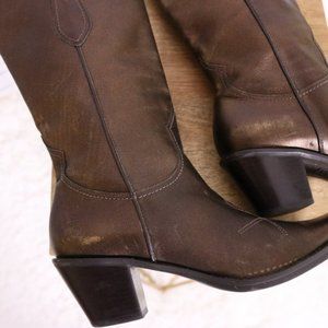 In good, pre-loved condition. There are some scuffs throughout (I photographed them best I could) however, because of the metallic sheer of the boots, it's not that noticeable in person. The scuffs on the toes are more noticeable. But the boots still look great and are 100% wearable. Genuine leather.